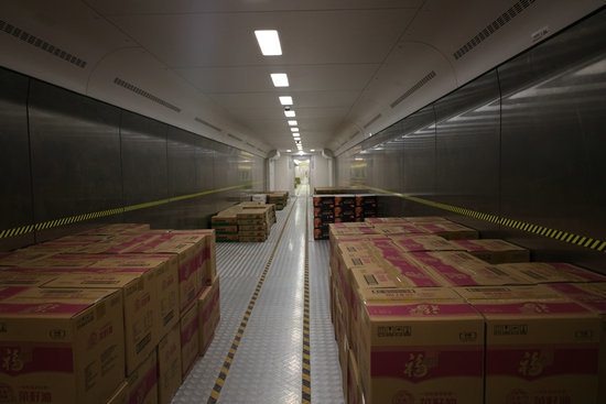 據(jù)了解,該高鐵快運動車共有8節(jié)車廂,滿載可裝貨物70噸。此外,該快運動車還有1。5米的大開門,方便大件貨物裝卸,是全國第一列具備冷鏈車廂的貨運動車組。