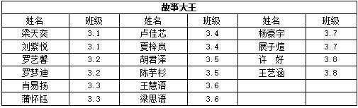 故事大王:在故事的王國里,有一群耀眼的明星,他們就是我們的“故事大王”。他們有著天馬行空的想象,能把平凡的故事講得跌宕起伏;他們有著生動的語言,好似神奇的畫筆,描繪出一個個栩栩如生的世界。無論是古老的傳說,還是現(xiàn)代的趣事,一經(jīng)他們之口,就像被賦予了魔力,緊緊抓住聽眾的心,你們當(dāng)之無愧,是故事世界的王者!