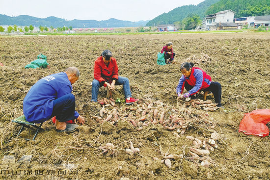 位于游仙區(qū)小枧鎮(zhèn)雨鳳村的市農科院薯類種植基地,村民采收甘薯