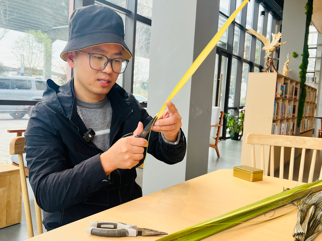 一把剪刀、一把鉗子、幾根鐵絲、幾片棕櫚葉,經(jīng)過一雙巧手便能擺弄出鳳凰、丹頂鶴、螞蚱等各種各樣、生靈活現(xiàn)的形象。李兵就是這樣十年如一日堅守匠心,追逐夢想,讓棕編這項傳統(tǒng)技藝迎來新生。
