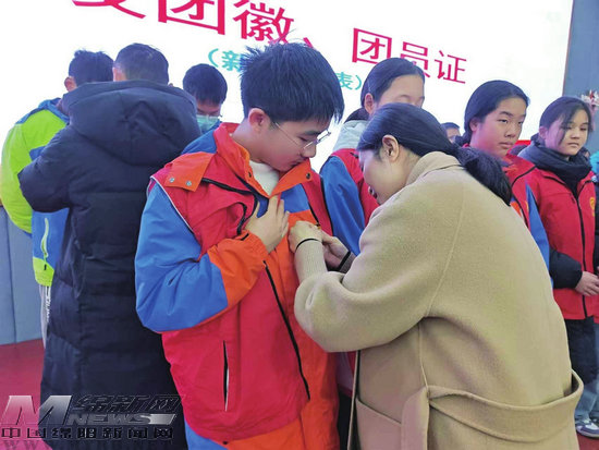 鹽亭中學(xué)新團(tuán)員佩戴團(tuán)徽