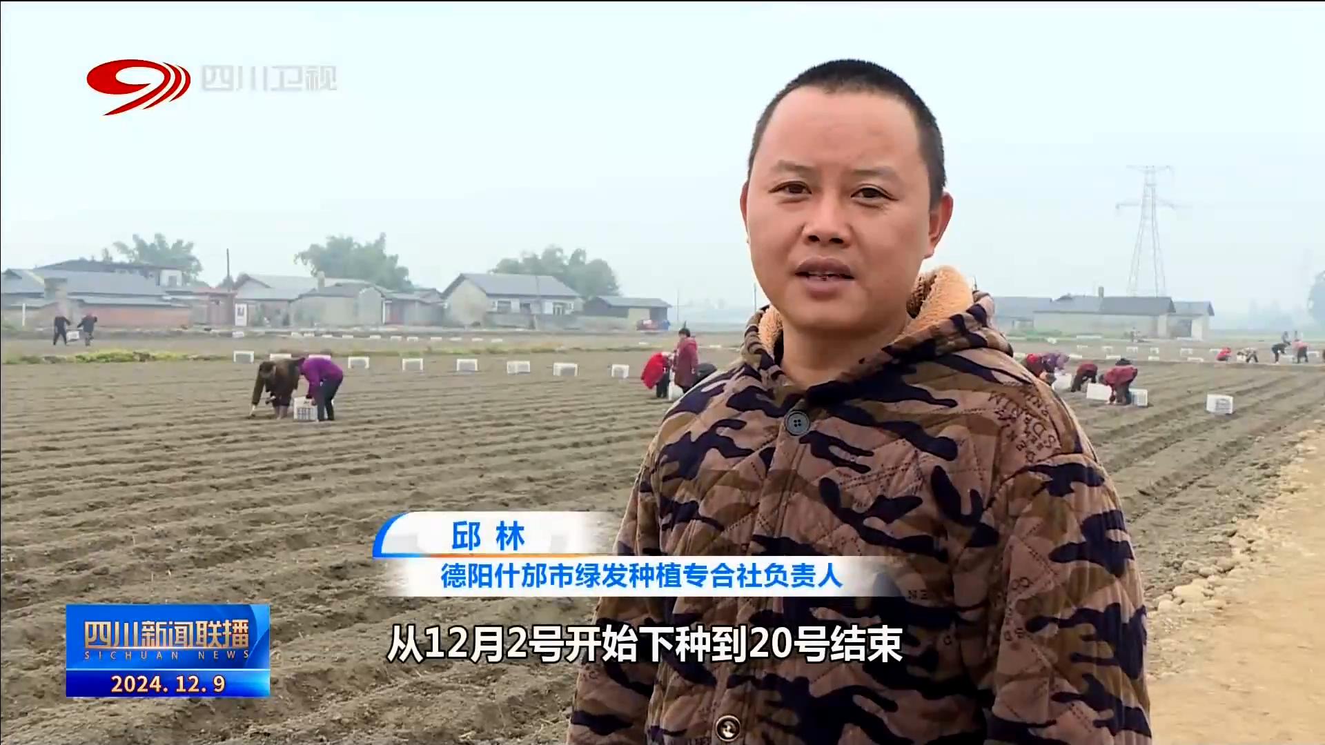 德陽什邡市綠發(fā)種植專合社負(fù)責(zé)人 邱林:我們這有600畝土地種土豆從12月2號開始下種到20號結(jié)束,畝產(chǎn)大概4000到7000斤,土豆成熟期大概5個(gè)月左右。