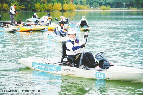 當天上午10時許,隨著裁判員一聲令下,選手們帶齊裝備乘坐各自的卡亞克賽艇向湖面挺進。只見他們到達理想目的地后,就自如地揮桿拋線,一氣呵成,再不停地甩竿、收線、抖動竿子,嘗試不同的拉線方式,吸引著目標魚發(fā)動攻擊。各位名釣大咖在如詩如畫的白水湖面上大秀絕活、“釣壇論劍”,頗有點“一蓑一笠一扁舟,一丈絲綸一寸鉤”的意境。