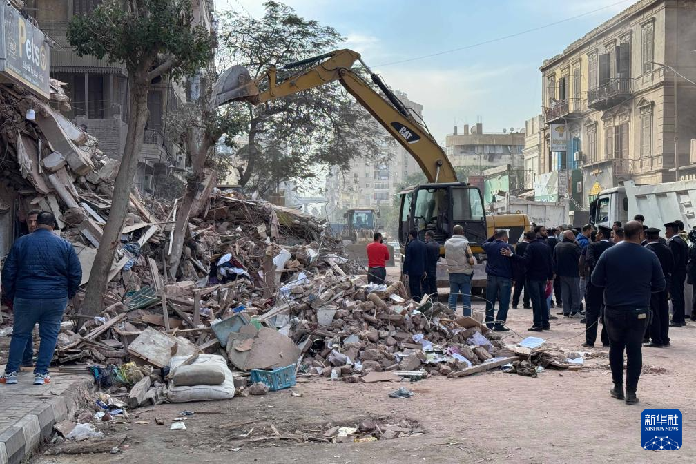 12月10日,救援人員在埃及首都開(kāi)羅的樓房倒塌事故現(xiàn)場(chǎng)開(kāi)展搜救。