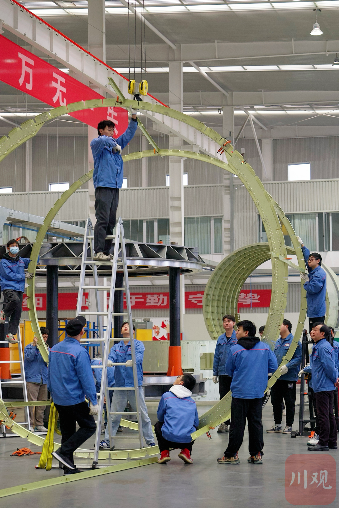 “躺”在地上的空心圓柱體,是已經(jīng)鉚接完畢的朱雀二號(hào)艙段。“4萬多顆鉚釘,每顆打在哪兒都要精確,一個(gè)蘿卜一個(gè)坑。”程加家介紹,3.35米直徑的艙段,對(duì)接時(shí)要將偏差控制在0.5毫米以內(nèi),從而保證箭體受力均勻。