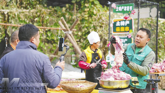 “這是糧食喂養(yǎng)的豬,肉質(zhì)緊實(shí)有嚼勁,營(yíng)養(yǎng)豐富、健康安全,感興趣的網(wǎng)友可直接下單……”日前,記者來(lái)到平武縣豆叩羌族鄉(xiāng)榮華村電商直播基地,看到“新農(nóng)人”建哥正在抖音平臺(tái)上向粉絲介紹新鮮豬肉,從到農(nóng)戶(hù)家收購(gòu)、到屠宰分割、再到肉質(zhì)展示……吸引了不少網(wǎng)友在線(xiàn)觀看,不到2個(gè)小時(shí)的直播,2500多公斤新鮮豬肉搶購(gòu)一空,銷(xiāo)售額近15萬(wàn)元。