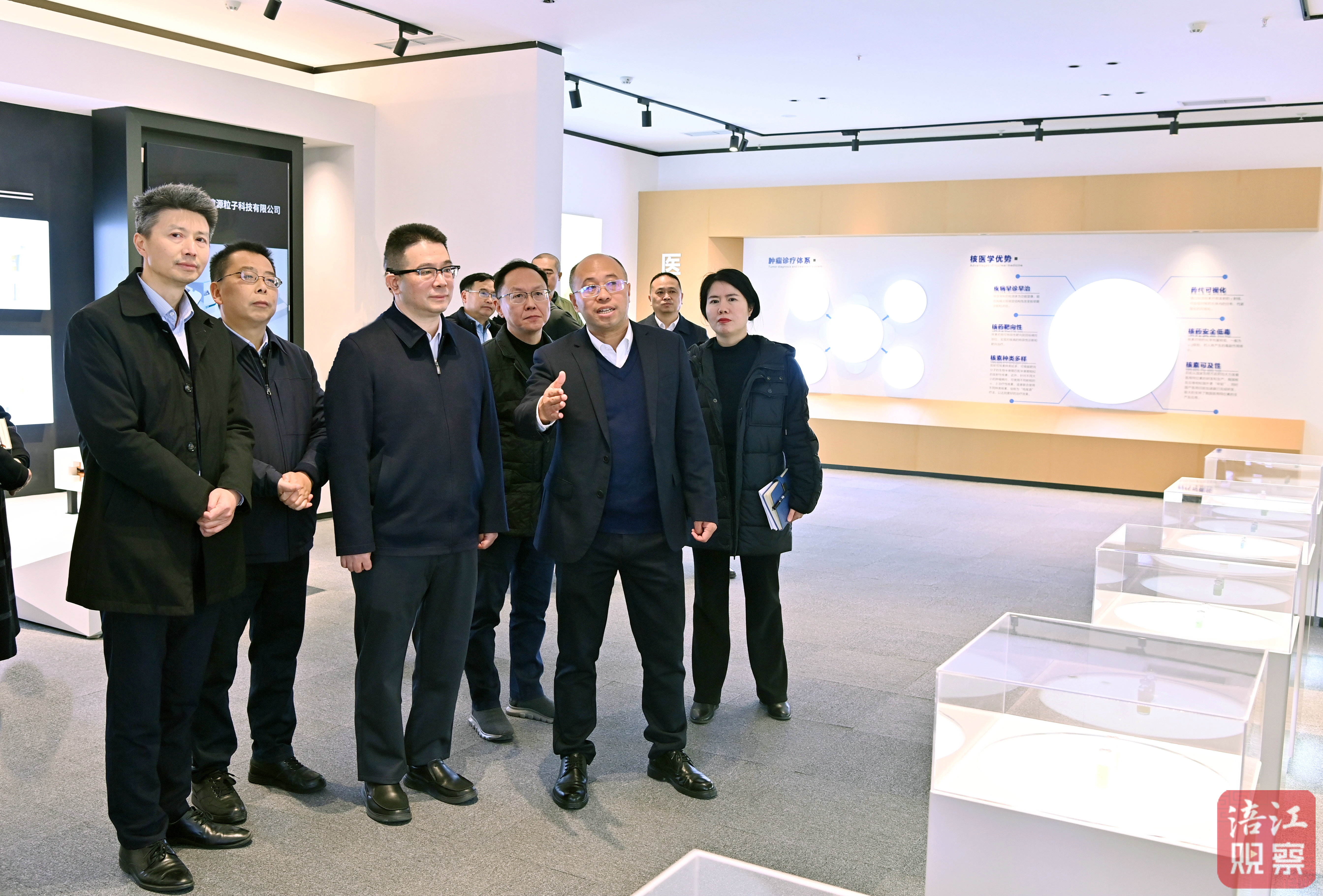 綿陽三江醫(yī)院位于綿陽市經(jīng)開區(qū)群文西街,以三級綜合醫(yī)院為建設(shè)標(biāo)準(zhǔn),目前一期工程全面建成,規(guī)劃床位1000張,即將投入運(yùn)營。“回旋加速器什么時候可以投入使用?醫(yī)療人才引進(jìn)情況如何?”李云走進(jìn)醫(yī)院門診大廳,實地察看醫(yī)院門診、住院部、重點(diǎn)科室,詳細(xì)了解醫(yī)院整體布局、醫(yī)療設(shè)備配置、患者就醫(yī)流程等,認(rèn)真聽取醫(yī)院整體規(guī)劃、人才隊伍架構(gòu)及信息化建設(shè)等情況介紹,希望三江醫(yī)院緊跟現(xiàn)代化醫(yī)療服務(wù)需求,精心做好開診試運(yùn)營各項籌備工作,持續(xù)完善醫(yī)療硬件設(shè)施,配強(qiáng)醫(yī)護(hù)力量,優(yōu)化診療環(huán)境,著力打造高品質(zhì)智慧醫(yī)院。隨后,李云前往核醫(yī)療展廳,詳細(xì)了解我市核醫(yī)療能力建設(shè)相關(guān)工作,得知醫(yī)院二期工程將聚焦全生命周期腫瘤醫(yī)學(xué)發(fā)展,規(guī)劃建設(shè)質(zhì)子治療中心時,李云給予肯定,強(qiáng)調(diào)要堅持實事求是,務(wù)實高效推進(jìn)醫(yī)院后續(xù)項目建設(shè),依托綿陽核醫(yī)學(xué)領(lǐng)域資源優(yōu)勢,加大醫(yī)學(xué)科研投入,實現(xiàn)醫(yī)教產(chǎn)研良性互動,推動科研成果轉(zhuǎn)化應(yīng)用和醫(yī)療技術(shù)創(chuàng)新突破,為建設(shè)綿陽全鏈條核醫(yī)療體系、打造全國核醫(yī)療產(chǎn)業(yè)高地貢獻(xiàn)更多力量。