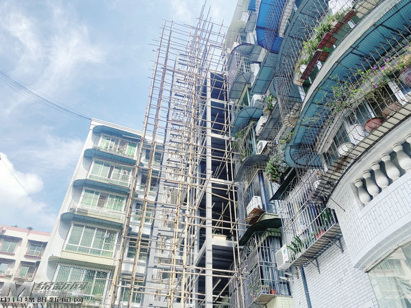 畫屏社區(qū)陽(yáng)光苑小區(qū)加裝電梯施工中