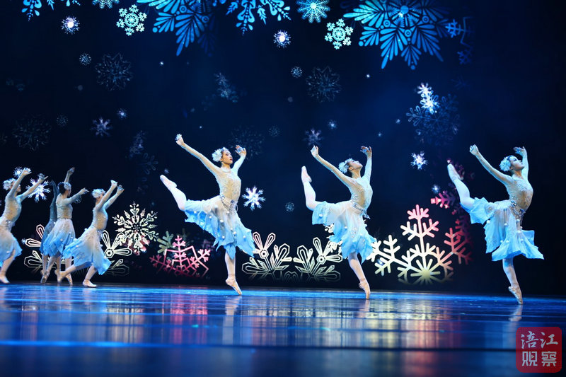 19時30分,如夢似幻的雪花飄然而下,伴隨著悠揚的音樂,原創(chuàng)芭蕾音詩舞《涪鷗》正式拉開演出序幕。