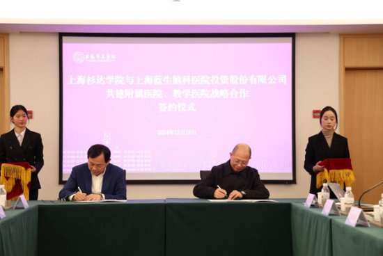 陳以一代表杉達(dá)學(xué)院致辭。他介紹,杉達(dá)學(xué)院成立于1992年,秉承“誠信、公平、質(zhì)量”的辦學(xué)理念,致力于建設(shè)多科性、國際化、高水平的應(yīng)用技術(shù)大學(xué)。他表示,雙方的戰(zhàn)略合作是響應(yīng)國家深化醫(yī)療衛(wèi)生體制改革號召的具體行動,旨在推進(jìn)“校企合作、院校融合”的教育改革,培養(yǎng)符合時代需求的醫(yī)療衛(wèi)生服務(wù)人才。期望通過與藍(lán)生腦科緊密協(xié)作,共同致力于提升教學(xué)條件、師資隊(duì)伍建設(shè),培養(yǎng)具有特色和專長的醫(yī)療衛(wèi)生服務(wù)人才,打造符合上海市醫(yī)療衛(wèi)生服務(wù)創(chuàng)新需求的大學(xué)附屬醫(yī)院及教學(xué)醫(yī)院,確保教育質(zhì)量和醫(yī)療服務(wù)水平能夠滿足國家和上海市的健康戰(zhàn)略需求。