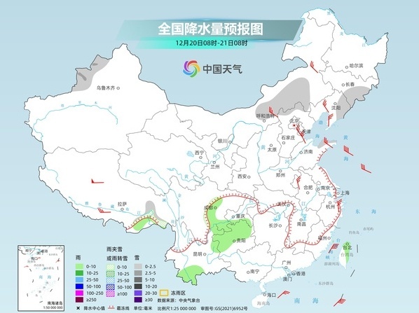 12月20日至21日,較強冷空氣將繼續(xù)影響我國,內(nèi)蒙古中部、河北西北部、東北地區(qū)東部等地部分地區(qū)氣溫下降6至8℃。降溫過后,我國多地氣溫較常年同期偏低,同時也將創(chuàng)今年下半年來新低。冷空氣的到來未能改變我國大部雨雪稀少的格局,但22日起,長江中下游等地將有一次弱降水過程。