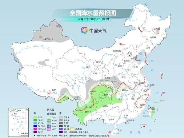 后天,新疆北部、西藏東南部、川西高原北部、云南西北部、陜西南部、湖北中西部、河南西部和南部等地部分地區(qū)有小到中雪或雨夾雪。四川盆地、重慶大部、貴州中北部、云南西部和中北部、湖南中西部、臺灣島東部等地部分地區(qū)有小雨。
