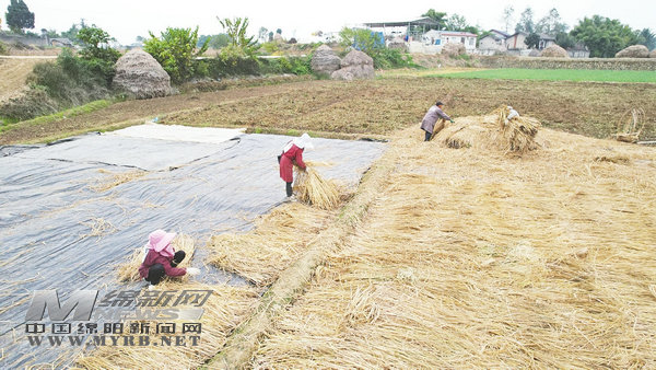 近日,記者在安州區(qū)塔水鎮(zhèn)玉池村看到,秋收后秸稈扎成的“稻草垛”經(jīng)過晾曬,正是上好的田間保暖材料。村民們正將秸稈分成小捆,均勻地鋪在田地里,通過“一層膠紙+一層稻草+一層膠紙+一層稻草”的保暖方式,確保在寒冬折耳根也能擁有溫暖濕潤的生長條件。