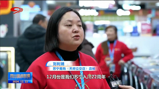 蘇寧易購(天府立交店)店長 劉利娟:12月份是我們蘇寧入川22周年,在這個期間我們新增加了22項福利,助推消費者的消費熱情。