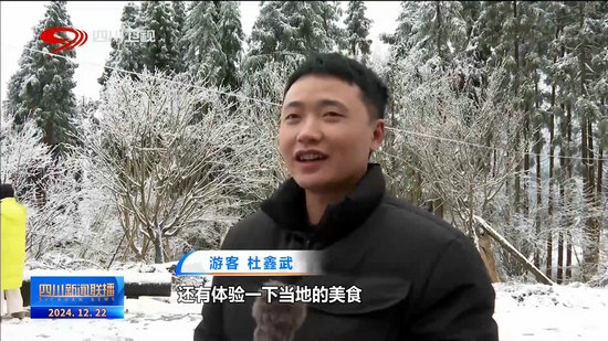 游客 杜鑫武:這剛好又下雪了,過來欣賞一下美景,還有體驗一下當?shù)氐拿朗?,還有風俗特色文化。
