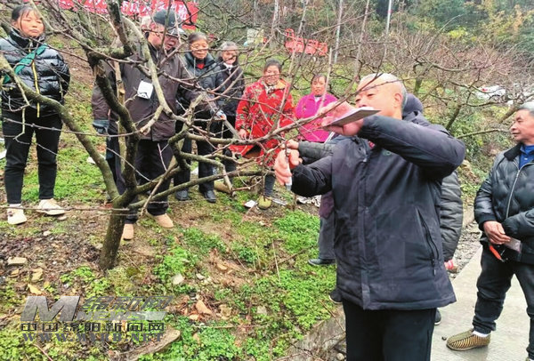 在培訓(xùn)現(xiàn)場,培訓(xùn)人員針對果樹生長、結(jié)果情況,結(jié)合當(dāng)前果園管理中存在的問題,與果農(nóng)面對面交流探討,詳細(xì)分析冬季管理對來年果樹產(chǎn)量和果品質(zhì)量的影響,對桃樹和果梅的冬季修剪基礎(chǔ)知識、桃樹和果梅樹形的結(jié)構(gòu)特點與培養(yǎng)目標(biāo)、不同修剪工具的正確使用方法等重點知識進(jìn)行逐項講解。