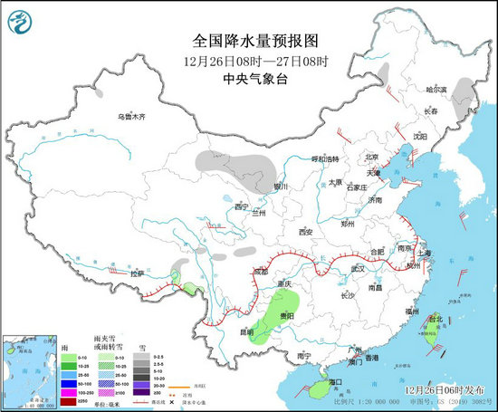 全國降水量預(yù)報圖(12月26日08時-27日08時)