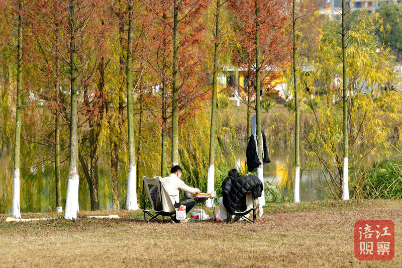 天藍(lán)水清、水鳥(niǎo)翱翔,湖中植被茂密、層林盡染,市民和游客或散步、或曬太陽(yáng)、或圍爐煮茶……在溫暖悠閑的時(shí)光里,感受歲月的美好與溫柔。