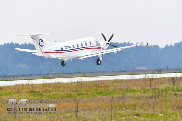 12月27日下午2點10分,一架載著7名旅客的皮拉圖斯PC-12型號飛機從北川永昌機場起飛。(記者 王勇 攝)