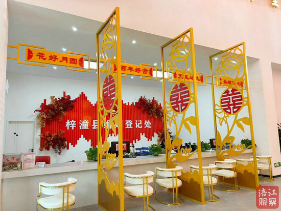 據(jù)介紹,梓潼縣婚俗文化產(chǎn)業(yè)園占地100余畝,累計投資近億元。在婚姻登記處設(shè)有辦證服務(wù)窗口、中式頒證大廳、婚檢中心、等候休息等服務(wù)區(qū)域,深入推進(jìn)婚姻登記服務(wù)智能辦、婚姻登記“跨省通辦”、“全省通辦”,主動靠前服務(wù),積極開展婚姻家庭輔導(dǎo)。