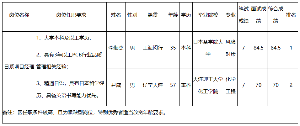 根據(jù)廣東依頓電子科技股份有限公司發(fā)布的招聘公告及招聘相關(guān)規(guī)定,經(jīng)(筆試)面試等程序,現(xiàn)將(筆試)面試成績(jī)予以公示。