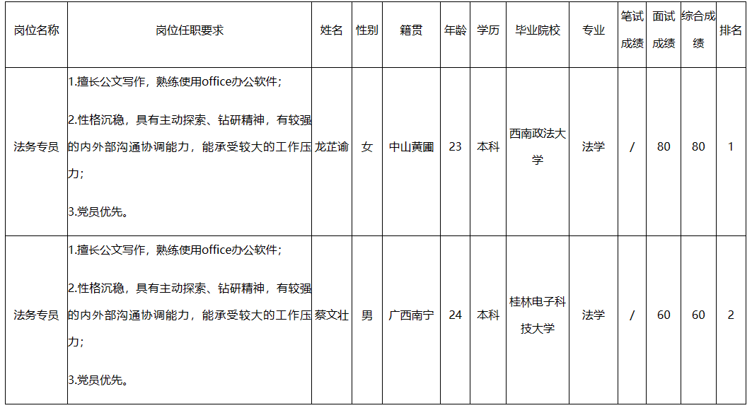 根據(jù)廣東長(zhǎng)虹電子有限公司發(fā)布的招聘公告及招聘相關(guān)規(guī)定,經(jīng)面試等程序,現(xiàn)將面試成績(jī)予以公示。
