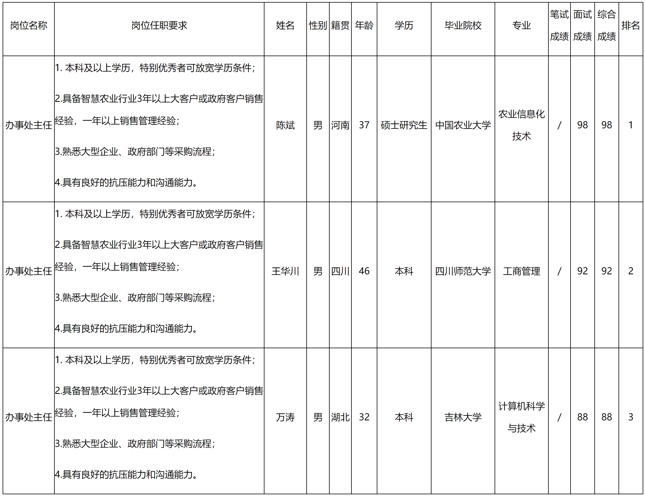 根據(jù)四川長(zhǎng)虹云數(shù)信息技術(shù)有限公司發(fā)布的招聘公告及招聘相關(guān)規(guī)定,經(jīng)面試程序,現(xiàn)將面試成績(jī)予以公示。