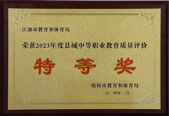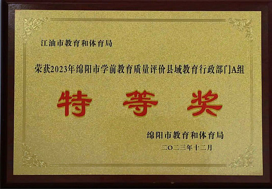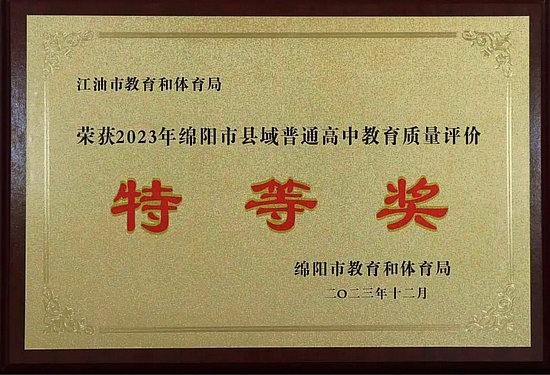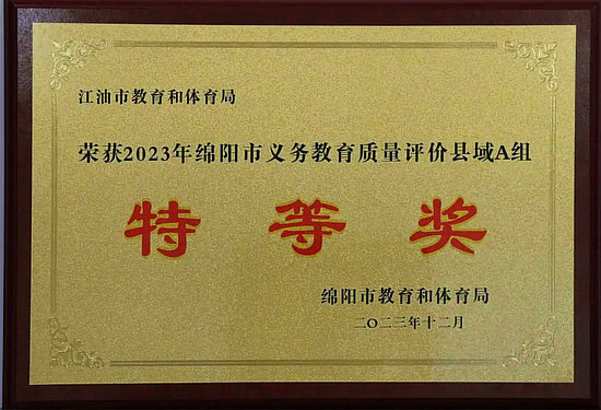 2023年,江油市教育和體育局榮獲綿陽市縣域普通高中教育質量“特等獎”,義務教育質量“特等獎”,學前教育質量“特等獎”,職業(yè)教育質量“特等獎”,