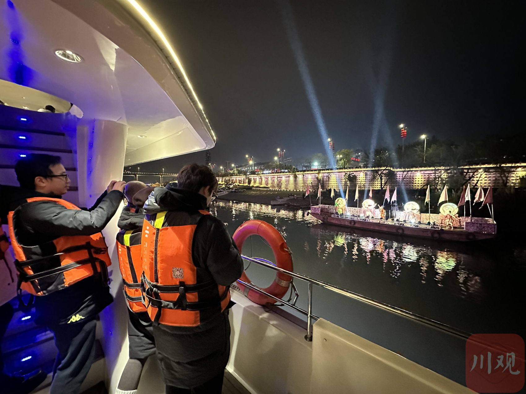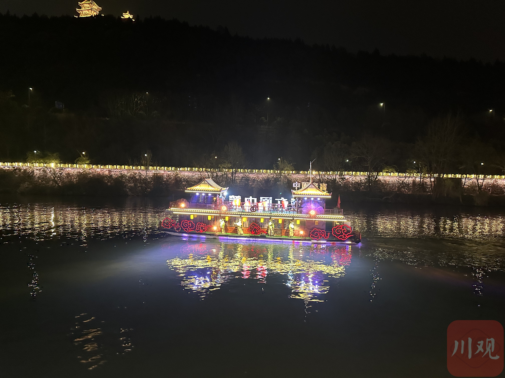 “春節(jié)迎新,今年我們?cè)谘莩隼锛尤肓烁嗟穆暪怆姳硌荨?rdquo;四川閬中水城農(nóng)業(yè)發(fā)展有限公司董事長沈陽介紹,閬中古城是全國目前保存完好的四大古城之一,游客眾多,為了讓更多的游客留下來,在當(dāng)?shù)卣闹С窒拢?022年12月,公司推出“客來閬中”環(huán)江實(shí)景演藝節(jié)目,環(huán)閬中古城外部水域20公里航線,開展演藝夜游,很快就成為閬中嘉陵江夜游新名片,夏季高峰期場(chǎng)場(chǎng)爆滿,供不應(yīng)求。
