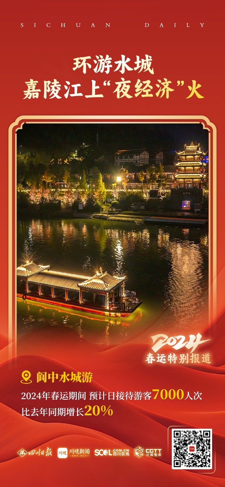 “閬中水城游”2023年接待游客30余萬人次,演藝300余場(chǎng),讓超2萬游客“留下來”。2024年春運(yùn)期間預(yù)計(jì)日均接待游客7000人次,比去年同期增長20%。