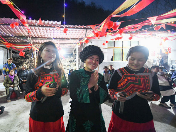 2月3日,在越西縣中所鎮(zhèn)陶家營村,游客到羅國芹家開的農(nóng)家樂用餐。新華社記者 周科 攝