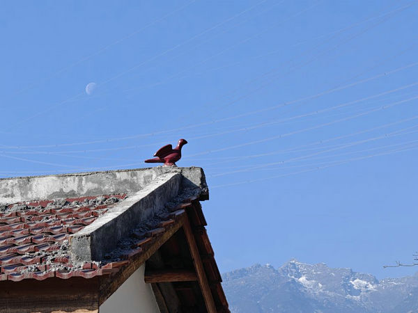 巴木家的屋頂,砌上了象征希望的鳥兒造型。新華社記者 謝佼 攝