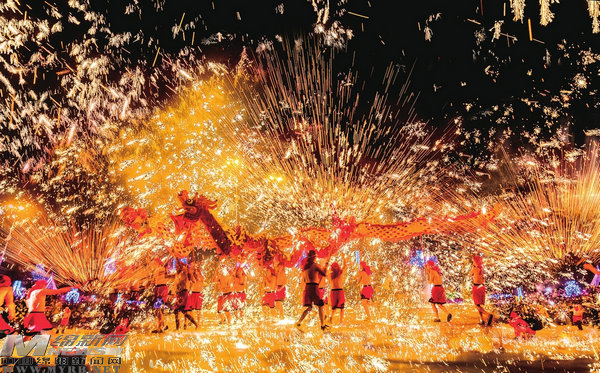 龍年春節(jié)怎能少了銅梁龍舞?春節(jié)期間,每天20:00-21:00,銅梁原創(chuàng)大型非遺山水實景劇《追夢·銅梁龍》將為游客朋友傾心演繹,完美展現(xiàn)大蠕龍、競技龍、水云龍、荷花龍、夜光龍、火龍、十八學(xué)士鯉魚燈等銅梁代表性龍舞燈舞?!蹲穳?middot;銅梁龍》中,充分展現(xiàn)了銅梁龍大道具、大套路、大場面、大氣勢、大變化的特點;在非遺傳承的龍燈更新上,全新設(shè)計了飛濺鐵花、漫天星火凝集而成的火龍和星光匯聚、水珠凝結(jié)的水云龍,以AR視覺和4D呈現(xiàn),幻化出虛擬和現(xiàn)實相融合的特效。