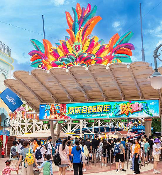圖為歡樂谷集團旗下主題公園,游客有序入園
