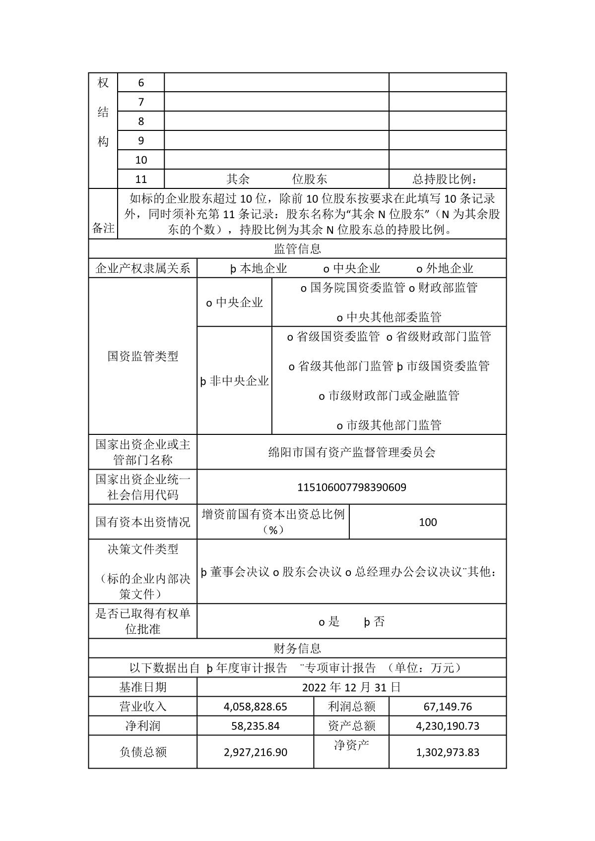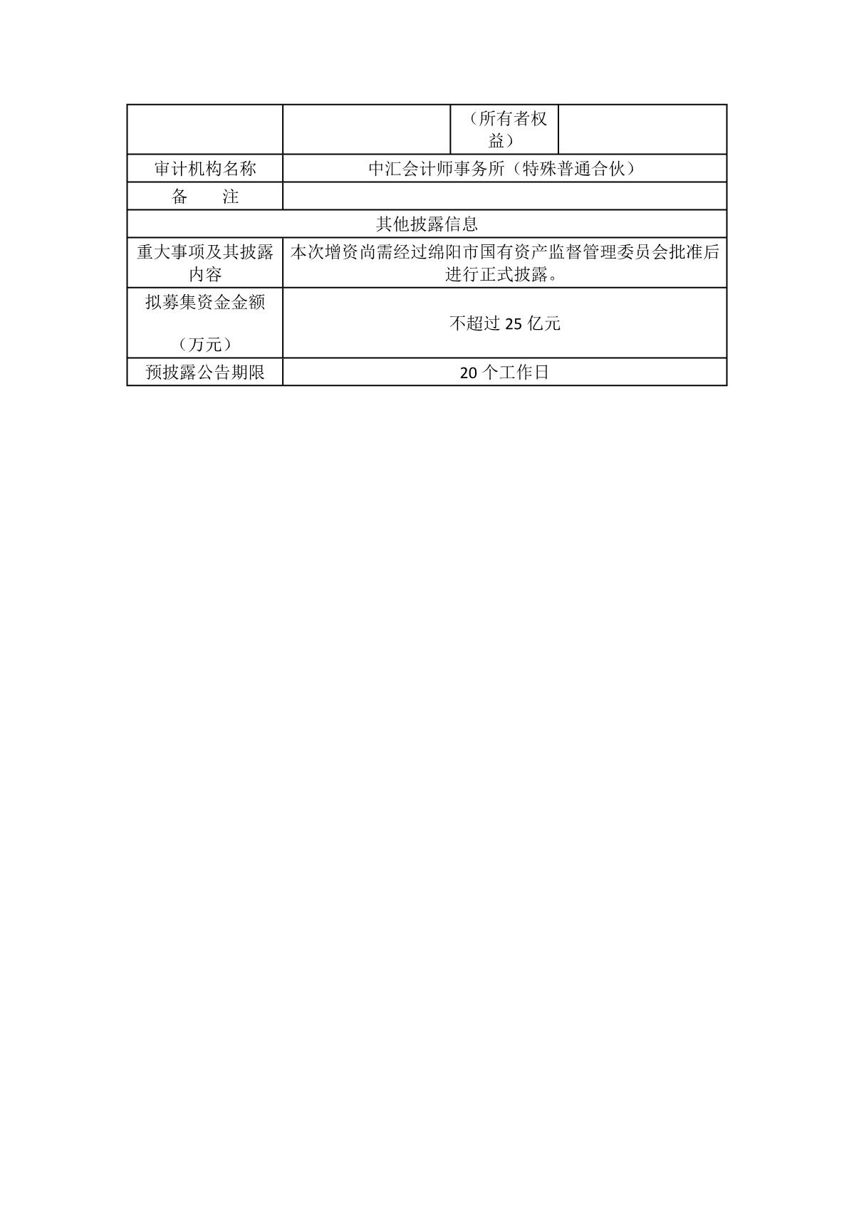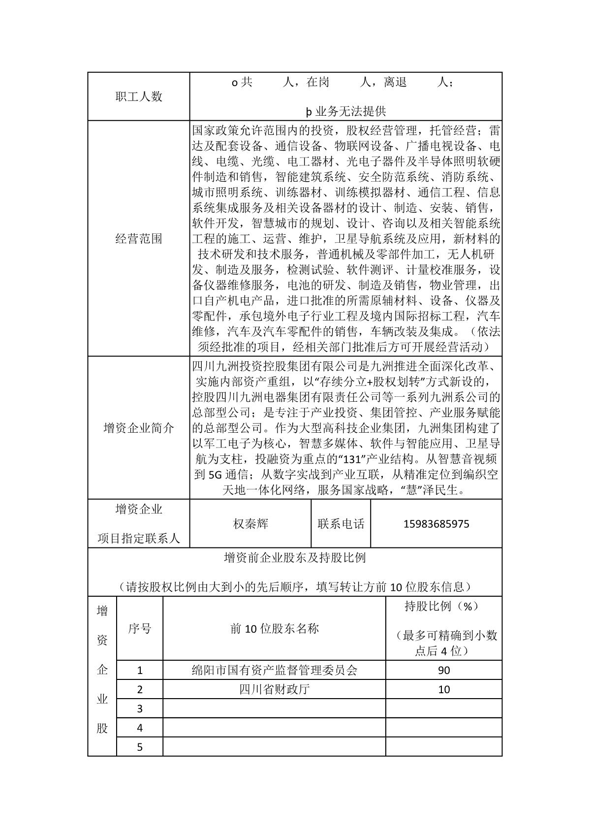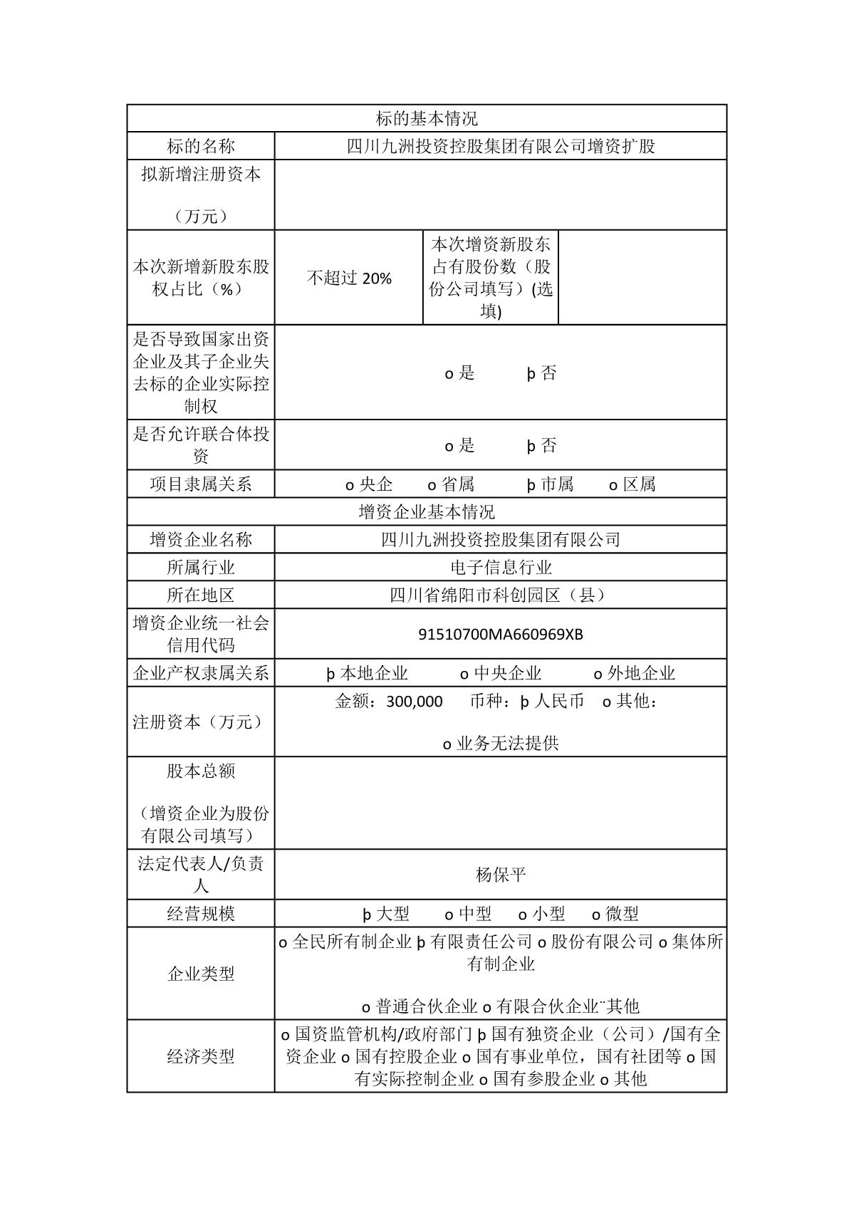四川九洲投資控股集團有限公司增資信息預(yù)披露