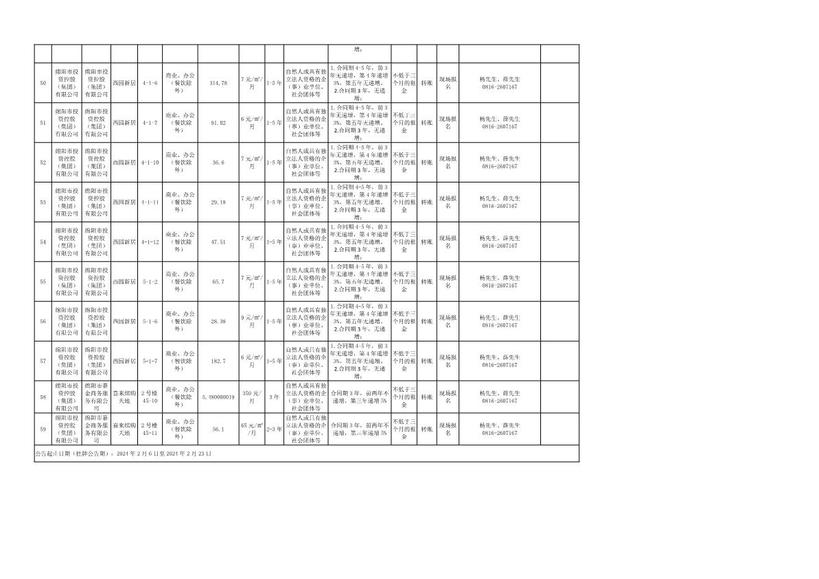綿陽市綿投商業(yè)運營管理有限責(zé)任公司資產(chǎn)出租公告