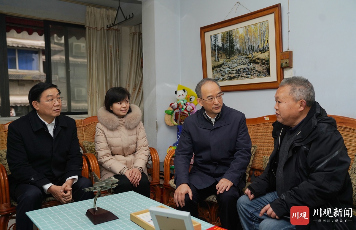 2月6日,省委副書記、省長黃強在成都市錦江區(qū)書院街街道五昭路社區(qū)軍烈屬陳德友家中看望慰問。