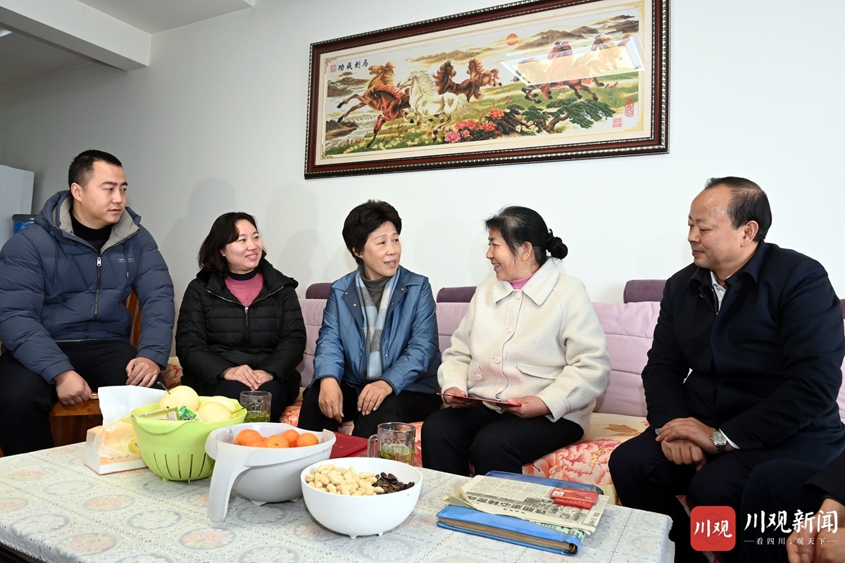 1月16日,省政協(xié)主席田向利在樂山市市中區(qū)肖壩萊茵水岸看望慰問烈士、英雄模范家屬涂山秀。(姜寒冬 攝)