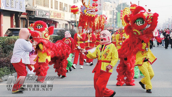 巡游隊伍沿著桑棗鎮(zhèn)主街道行進,雄獅不停變換動作,表演花式絕活。在震天的鼓點聲中,紅黃兩色長龍時而龍首擺動,時而龍尾飛舞。街道兩旁人頭攢動,群眾或拍手叫好或拍攝記錄,不錯過任何一個精彩瞬間。桑棗鎮(zhèn)群眾劉剛告訴記者,這個活動我每年都觀看,很有年味。