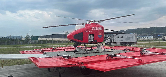 據(jù)悉,“星曜一號(hào)”大荷載長(zhǎng)航時(shí)無(wú)人直升機(jī)應(yīng)急救援裝備依托北京清航紫荊裝備科技有限公司、廈門信達(dá)國(guó)貿(mào)汽車集團(tuán)股份有限公司、廈門信達(dá)星曜有限公司、三明市大田縣清航裝備基地聯(lián)合開展研發(fā)、總裝、聯(lián)調(diào)與測(cè)試。由JZ-550大荷載長(zhǎng)航時(shí)交叉雙旋翼無(wú)人直升機(jī)、高性能四驅(qū)越野測(cè)控車、運(yùn)輸起降平臺(tái)三部分組成。JZ-550交叉雙旋翼無(wú)人直升機(jī)起飛重量>550kg、有效載重>230kg、抗風(fēng)等級(jí)>8級(jí)、升限7500m、續(xù)航時(shí)間>5h。交叉雙旋翼技術(shù)克服了直升機(jī)在不穩(wěn)定氣流環(huán)境下導(dǎo)致墜機(jī)的“死亡渦環(huán)”產(chǎn)生,在不穩(wěn)定大區(qū)域氣流中可創(chuàng)造穩(wěn)定的小區(qū)域飛行流場(chǎng)環(huán)境,在火場(chǎng)上空、峽谷、樓群建筑物間均可穩(wěn)定飛行,并具備高溫、高寒、高原、濕熱、鹽霧、中雨、中雪等環(huán)境下穩(wěn)定飛行能力。測(cè)控車采用高性能四驅(qū)越野底盤,可在崎嶇復(fù)雜路面及地形環(huán)境、惡劣氣候下穩(wěn)定行駛。運(yùn)輸起降平臺(tái)由測(cè)控車拖掛前行,具有5度坡面自動(dòng)找平、一鍵展開閉合功能,能夠?yàn)闊o(wú)人直升機(jī)提供可靠便捷起降平臺(tái),免去了直升機(jī)搬運(yùn),并擺脫了對(duì)起降場(chǎng)地的限制。“星曜一號(hào)”應(yīng)急救援裝備用于解決森林草原、大型石化、超高層建筑、船舶等火災(zāi)撲救及地震、山地、洪澇、冰雪等復(fù)雜惡劣環(huán)境下裝備投送、人員救援等。