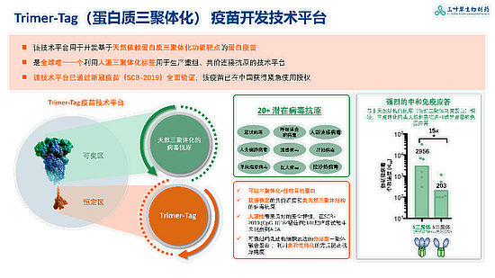 三葉草生物堅(jiān)持源頭創(chuàng)新,擁有獨(dú)創(chuàng)領(lǐng)先的蛋白質(zhì)三聚體化(Trimer-Tag)疫苗研發(fā)平臺(tái),這是全球唯一一個(gè)利用人源三聚體化標(biāo)簽用于生產(chǎn)重組、共價(jià)連接抗原的技術(shù)平臺(tái)。三葉草生物的技術(shù)平臺(tái)已通過其第一個(gè)商業(yè)化疫苗產(chǎn)品得到全面驗(yàn)證,該技術(shù)平臺(tái)的適用性還可擴(kuò)展到其他在研的產(chǎn)品管線。除此之外,三葉草生物擁有已證實(shí)的全球疫苗研發(fā)實(shí)力,研究經(jīng)驗(yàn)橫跨五大洲(八個(gè)國家),且其擁有廣泛專業(yè)背景的全球科學(xué)顧問委員會(huì),為創(chuàng)新型自研管線的研發(fā)注入活力。