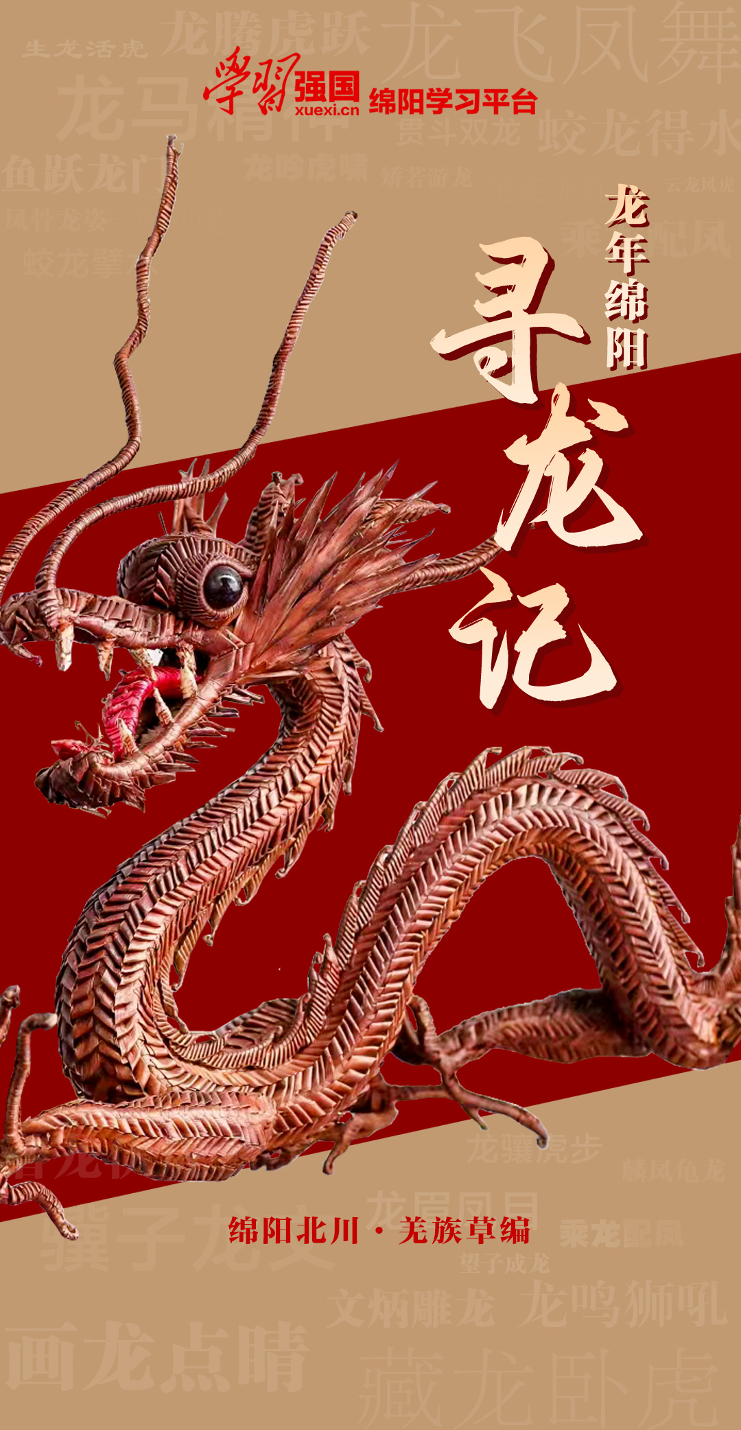 這些草編龍形態(tài)各異,有的騰空而行,有的靜臥昂首,還有的悠然漫步。這些作品,都是由省級(jí)非遺項(xiàng)目北川羌族草編代表性傳承人黃強(qiáng)和他的團(tuán)隊(duì)制作的。所有的草編龍,都以棕葉等為原材料,綜合運(yùn)用編、扎、剪、粘等手法編制而成。傳統(tǒng)的北川草編制作技藝和材料的巧妙運(yùn)用,讓龍身具有特別的質(zhì)感和立體視效。