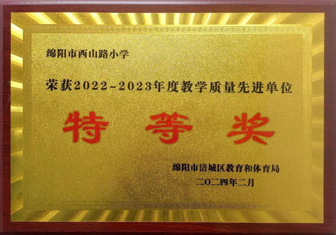 綿陽市西山路小學榮獲“綜合績效考核特等獎”“教學質(zhì)量特等獎”“畢業(yè)生就近入學特等獎”殊榮。