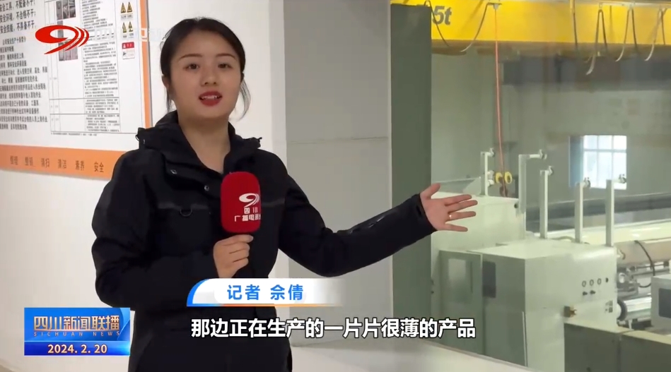 記者 佘倩:萬千氣象看四川,現(xiàn)在我們走進的是位于綿陽的東材科技,那邊正在生產(chǎn)的一片片很薄的產(chǎn)品,是光伏聚酯薄膜,和同類的含氟的光伏聚酯薄膜產(chǎn)品相比,它能夠解決在回收環(huán)節(jié)當中造成的污染問題。