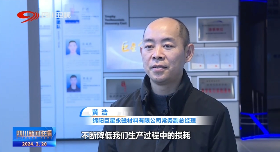 綿陽巨星永磁材料有限公司常務副總經(jīng)理 黃浩:我們將會持續(xù)進行技術創(chuàng)新,不斷降低我們生產(chǎn)過程中的損耗,縮短和優(yōu)化工藝過程,從而形成高質量、高效率的生產(chǎn)能力,讓企業(yè)更具市場競爭力。