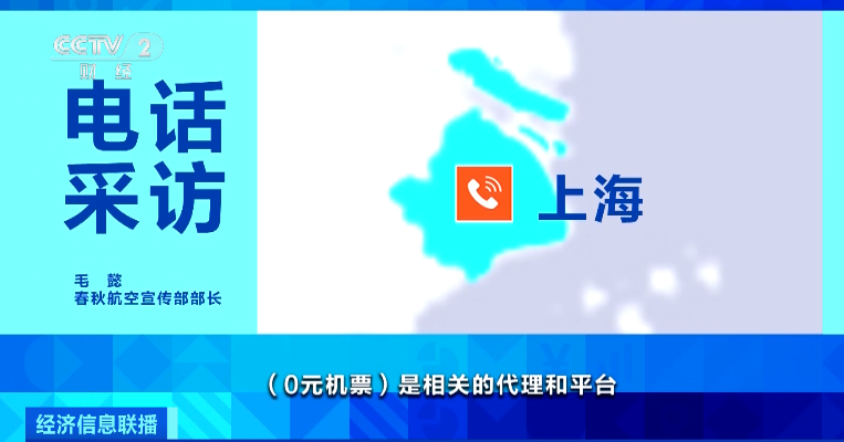 春秋航空宣傳部部長 毛懿:(0元機票)是相關(guān)的代理和平臺,在我們機票促銷價格的基礎(chǔ)上進行了補貼,平臺或者代理為了爭奪旅客、流量,會用這種自費補貼的方式。