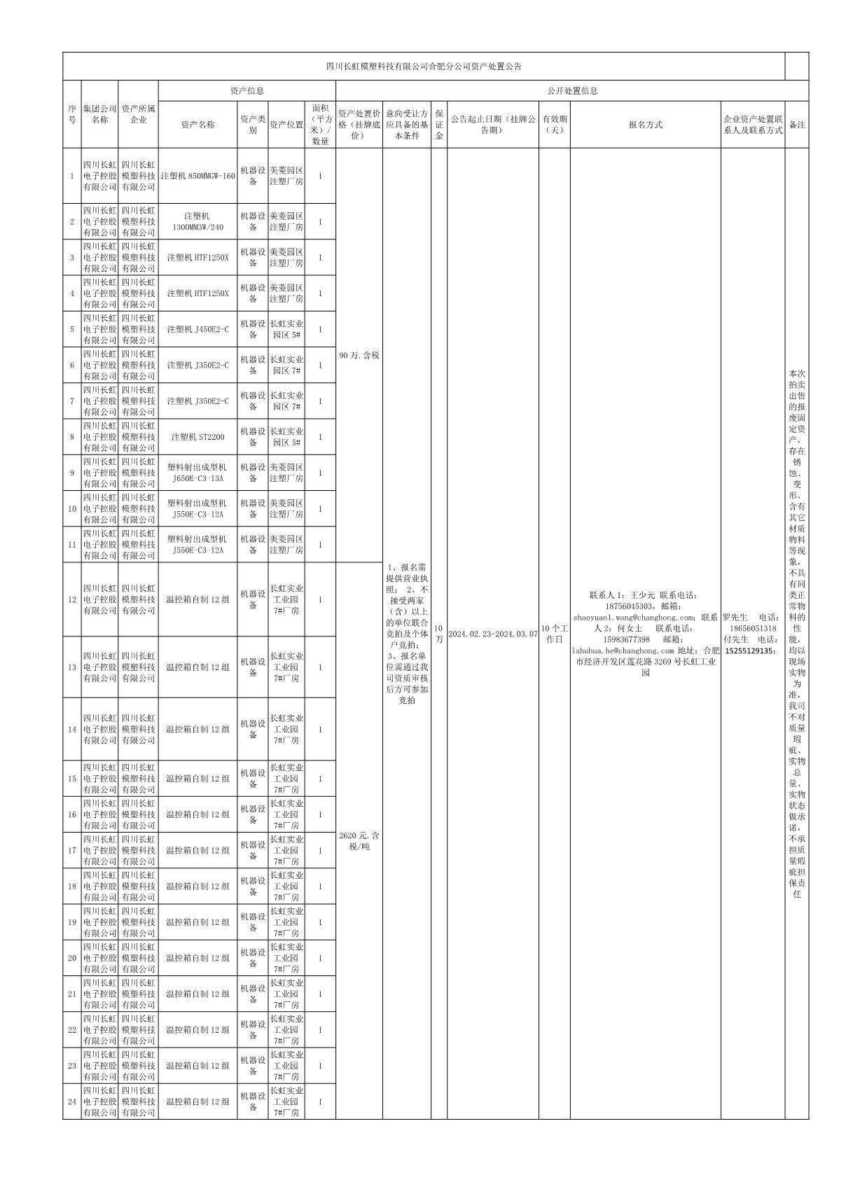 四川長(zhǎng)虹模塑科技有限公司合肥分公司資產(chǎn)處置公告