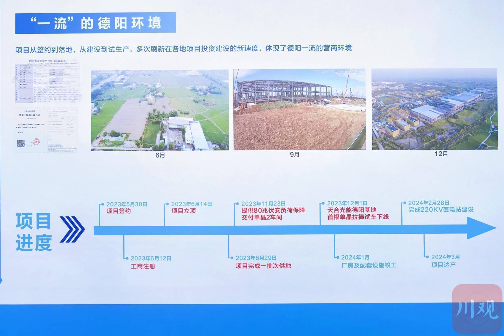 在德陽什邡市,當(dāng)?shù)卣故镜?張照片,記錄了半年之內(nèi)什邡市天合光能新材料產(chǎn)業(yè)園從荒地到160億元產(chǎn)業(yè)項目落地生根的全過程。無論是25天完成504畝項目用地的征拆工作,還是26天完成場平及施工水電接入,都展示著什邡市政府的決心。