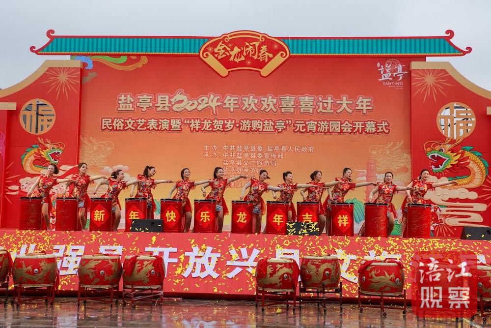 在鹽亭,2024年歡歡喜喜過大年元宵民俗文藝表演暨“祥龍賀歲·游購鹽亭”元宵游園會舉行。