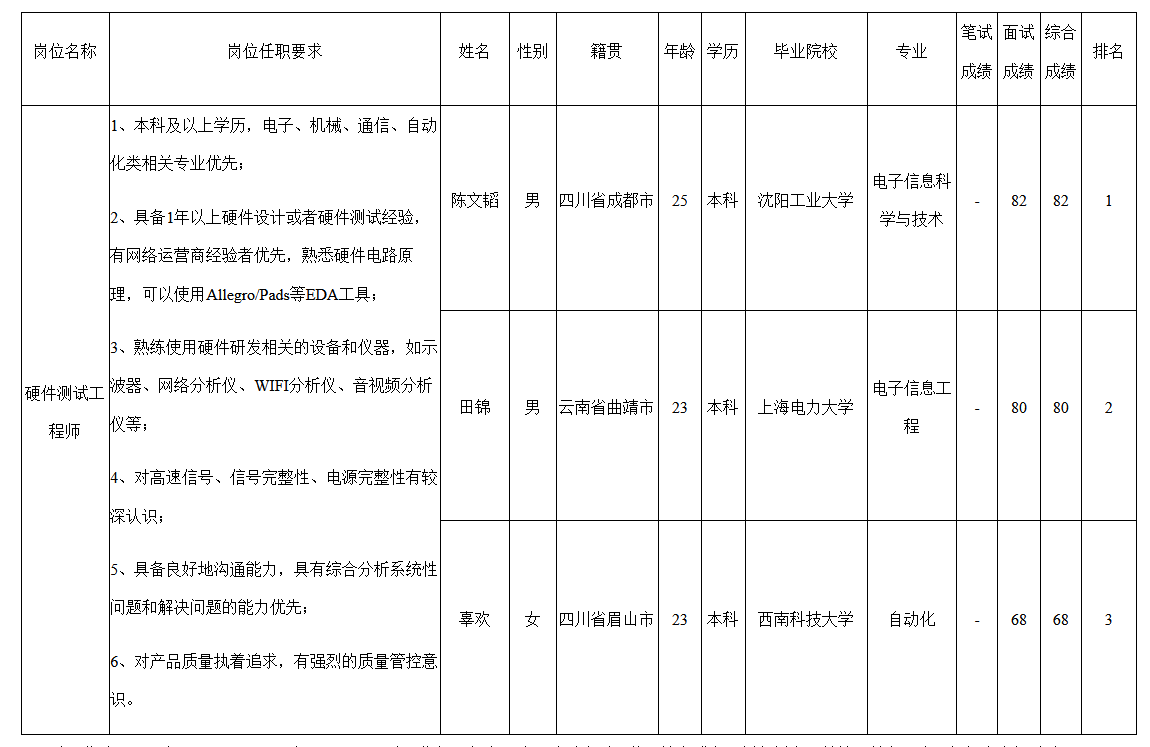 四川九州電子科技股份有限公司關(guān)于招聘硬件測試工程師崗成績的公示